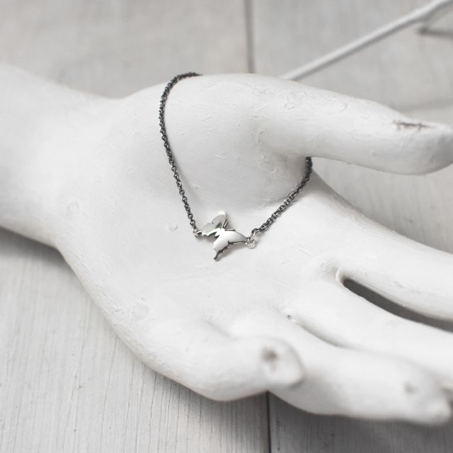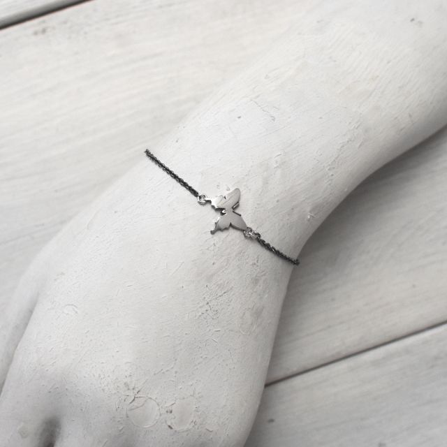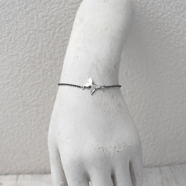 小さなアゲハ蝶とチェーンを組み合わせたシルバーブレスレット。