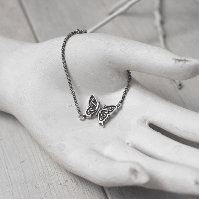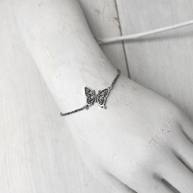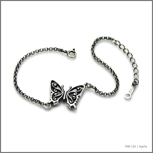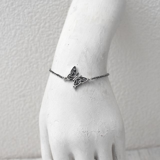 アゲハ蝶とチェーンを組み合わせたシルバーブレスレット。