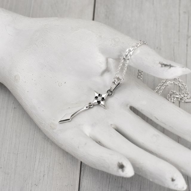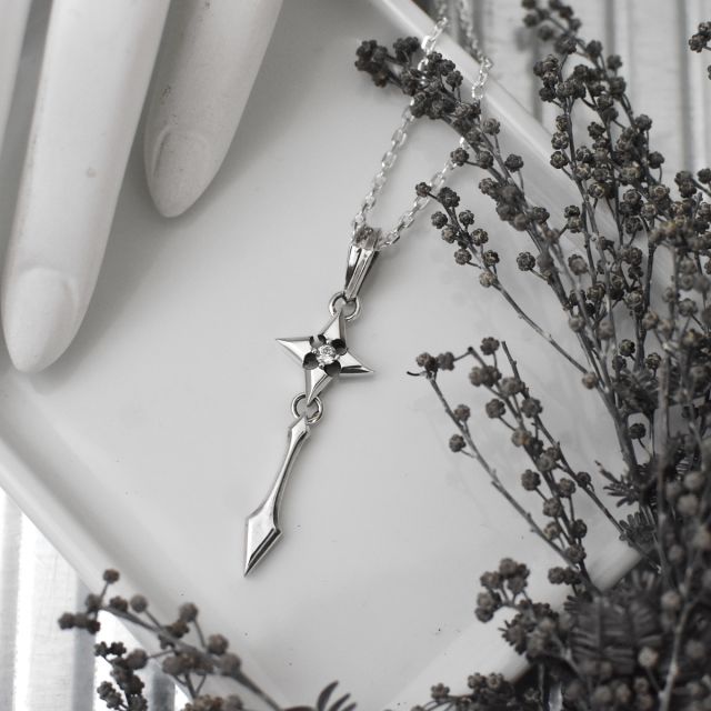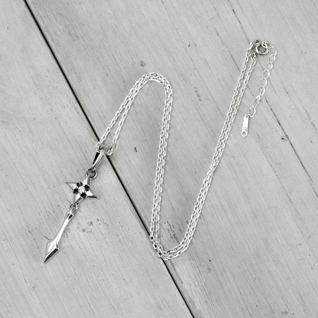 突き刺さるように下方に伸びる氷柱を表現したシルバーペンダント。