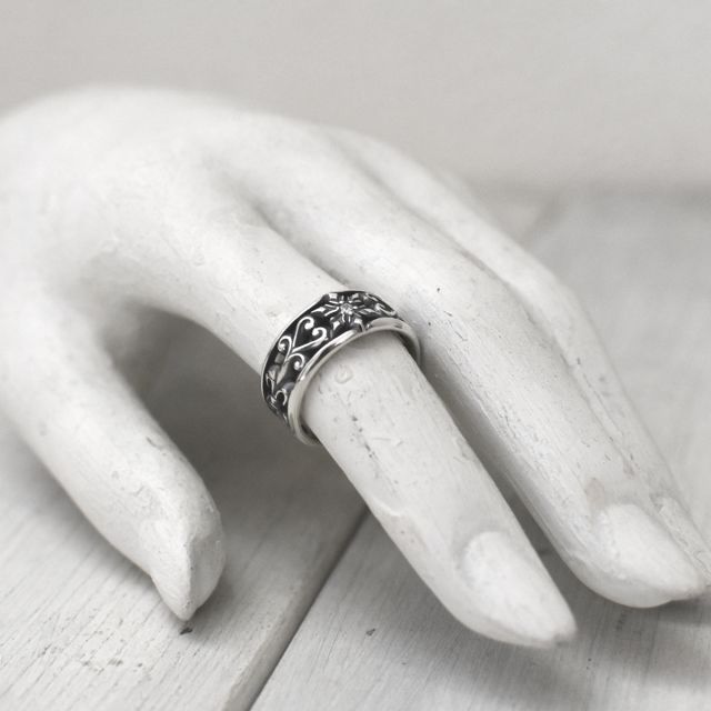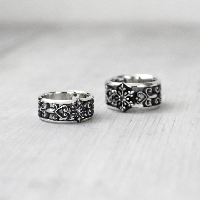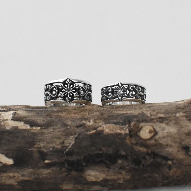 雪の結晶デザインのシルバーリング。